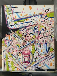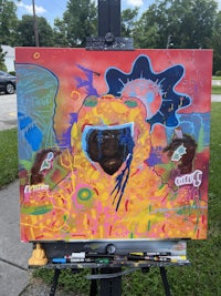 an easel with a painting on it
