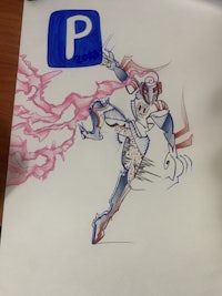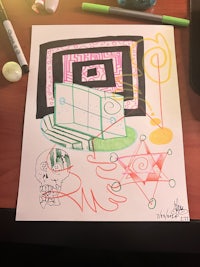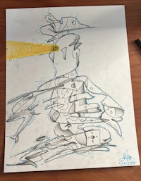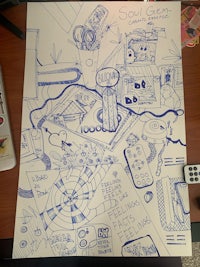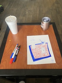 a sketch of a room with furniture and a marker